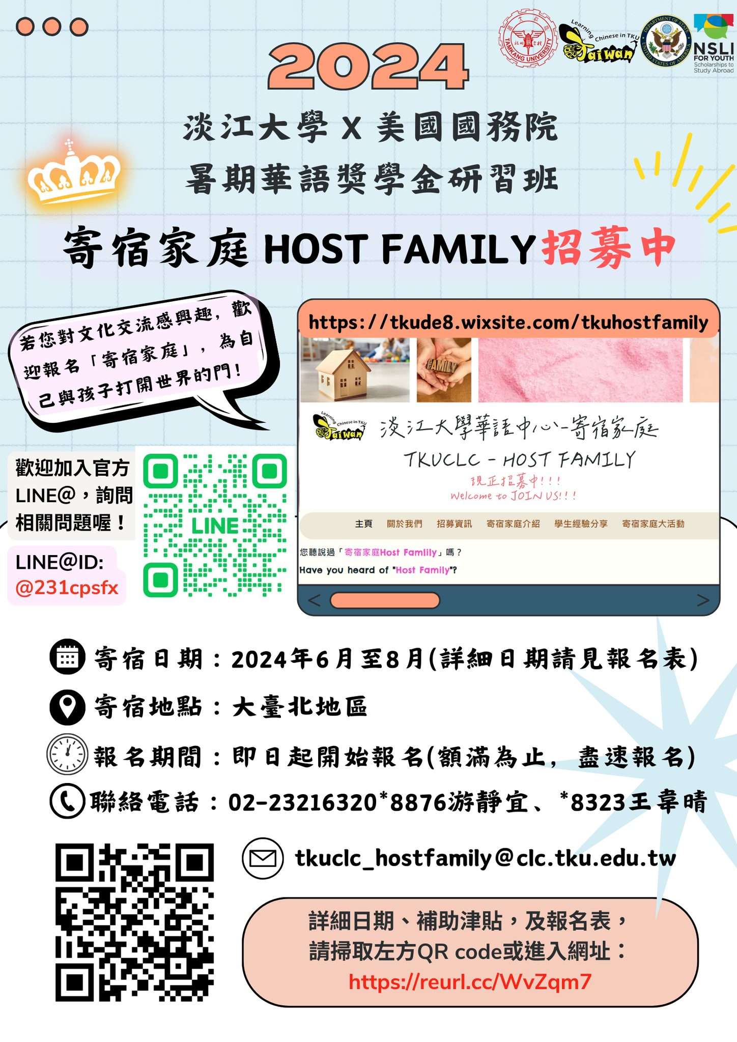 六、寄宿家庭報名網址:https://reurl.cc/WvZqm7。