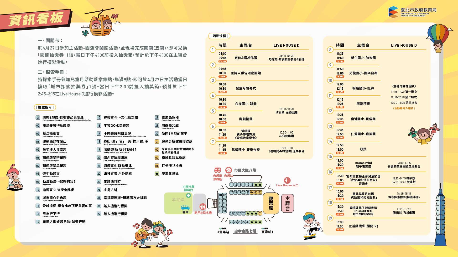 本週六為本市兒童月主活動辦理的日期,地點在臺北流行音樂中心,在昆陽捷運站和南港站中間。