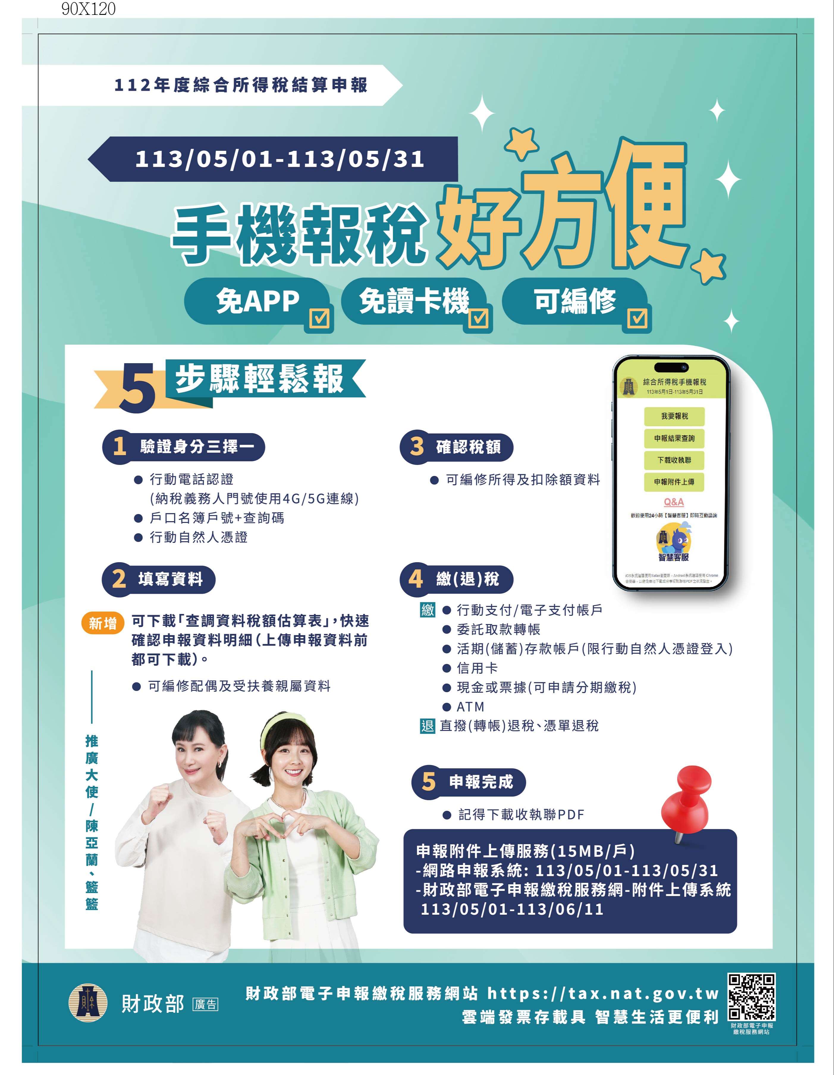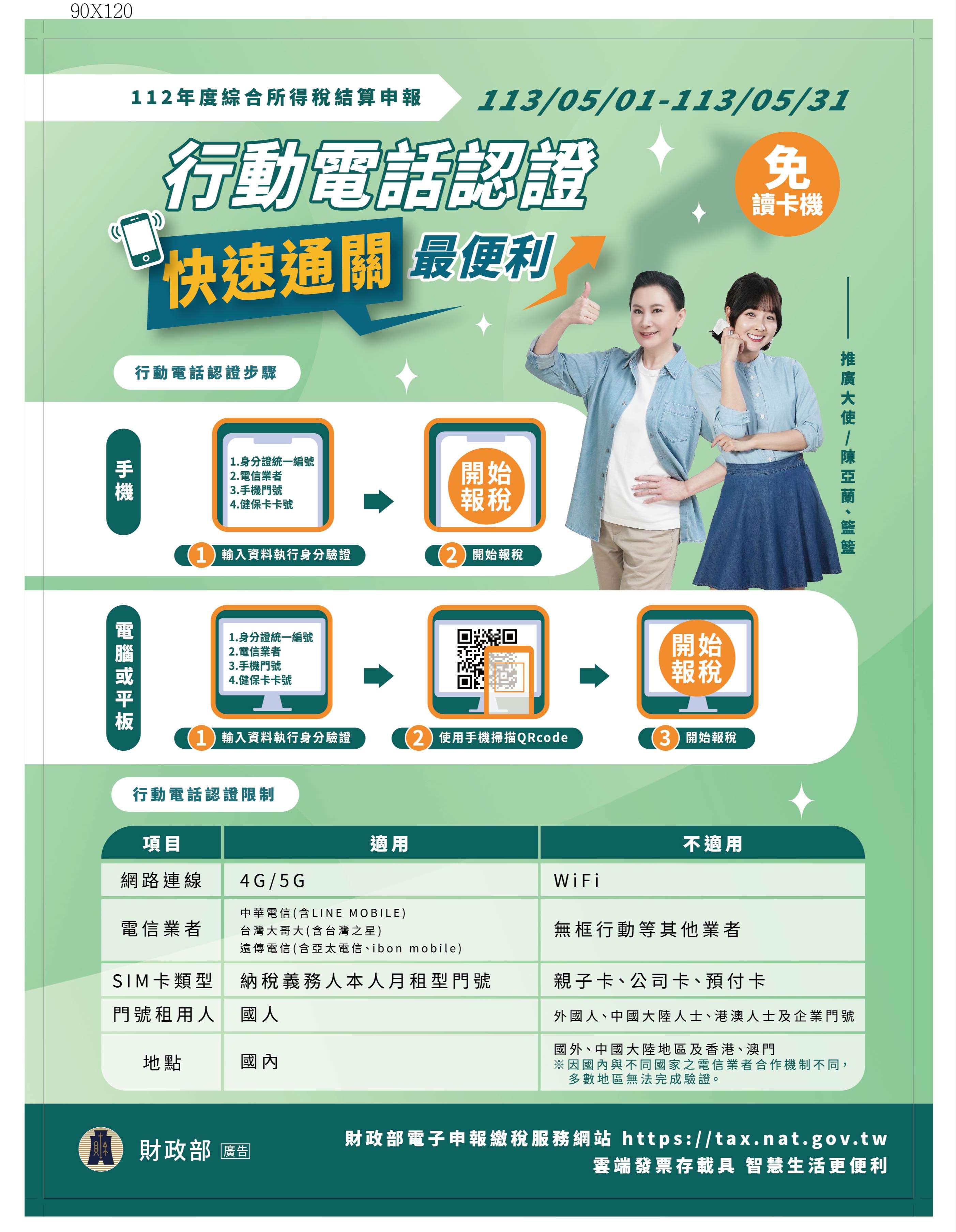 推廣民眾於今年5月份透過手機以行動電話認證完成112年度綜合所得稅結算申報