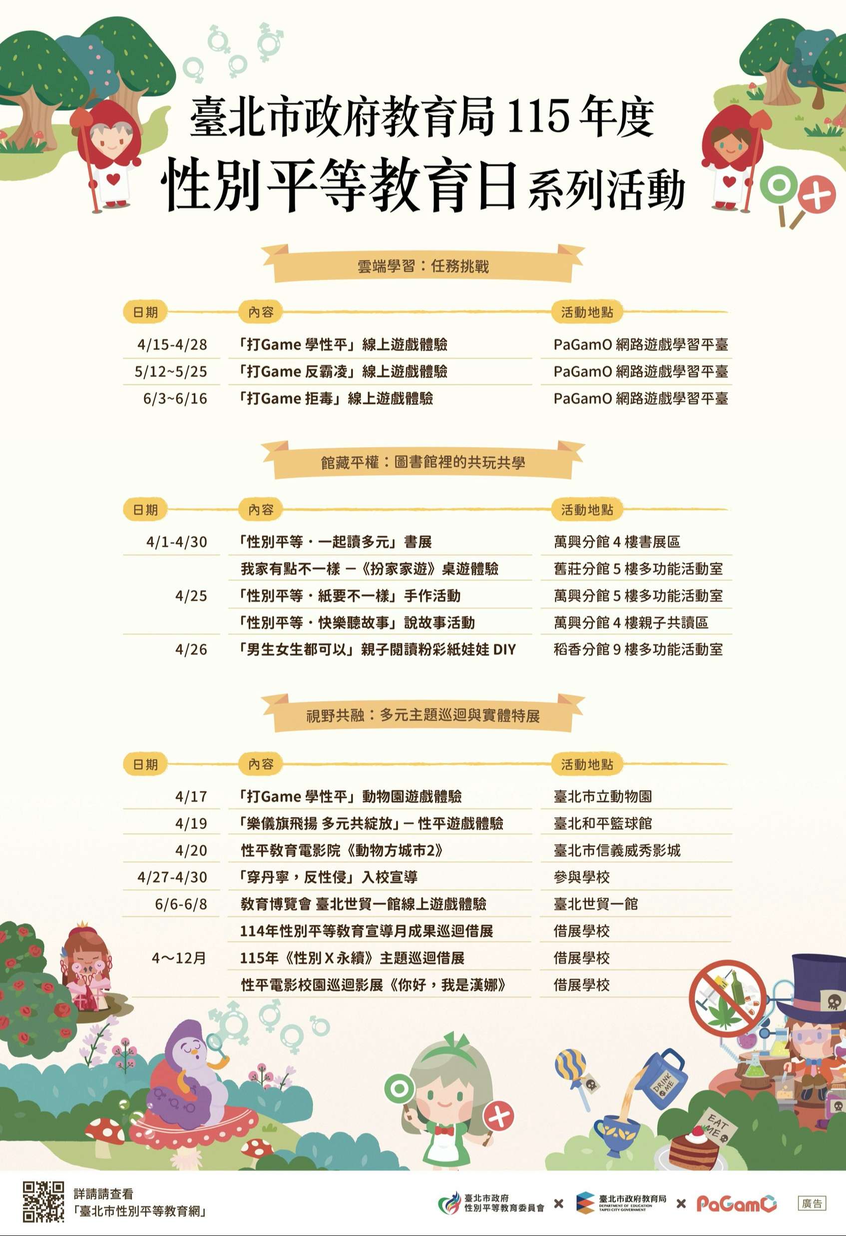 「性別平等教育日」,辦理系列活動以鼓勵學生能於日常生活中實踐性別平等的理念。